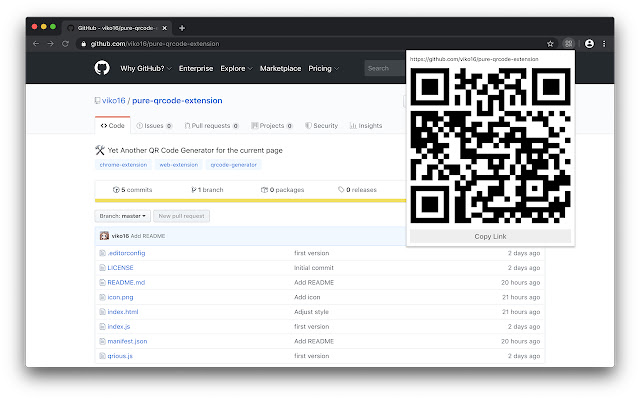- One-Click to show QR Code for the current page - Automatically replace `localhost` to local IP.Easy to share - Runs offline and free - WebExtension works with Chrome and Firefox