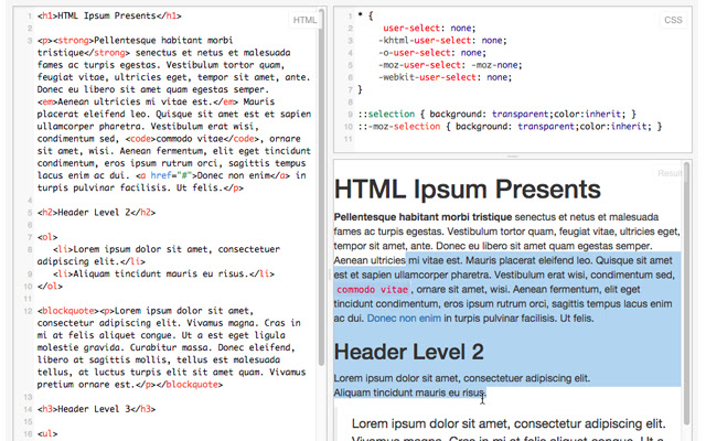 Always Select prevents sites from disabling user selection via css.Test page: http://jsfiddle.